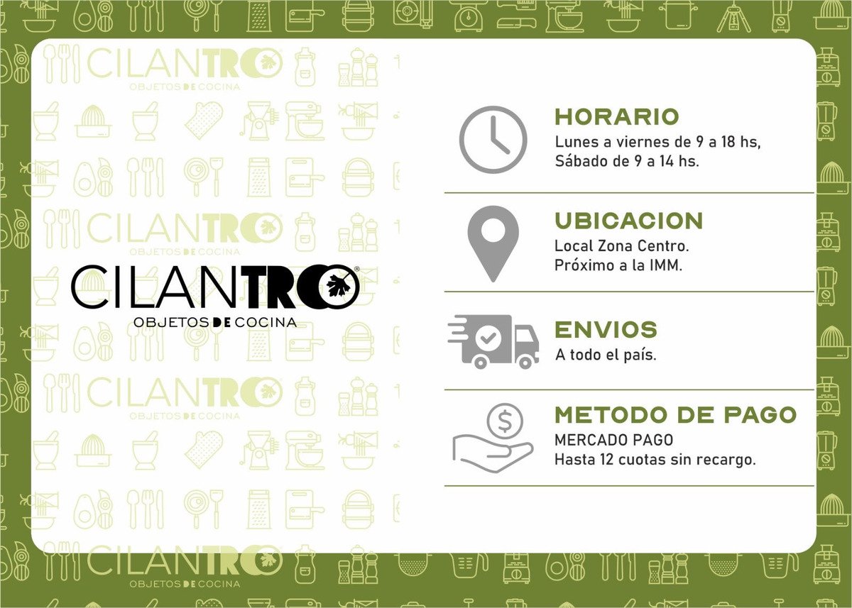 Cilantro Bazar es una compañía uruguaya dedicada a la comercialización de una amplia gama de productos gastronómicos en la ciudad de Montevideo. Con una trayectoria de 10 años en el mercado, se ha convertido en un referente para los amantes de la cocina y la buena comida. Tenemos pasión por la gastronomía, lo que nos llevó a estar involucrados en la industria hace décadas asesorando grandes chefs y restaurantes. En Cilantro Bazar, nuestros clientes pueden encontrar una amplia variedad de productos de calidad, cuidadosamente seleccionados para satisfacer las necesidades tanto de profesionales como de aficionados culinarios, desde una gran variedad de productos de vajilla hasta utensilios de cocina y accesorios, ofrecemos todo lo necesario para equipar una cocina de alto nivel. Contamos, además, con un profundo conocimiento en gastronomía y estamos siempre dispuestos a brindar asesoramiento de primer nivel. Nuestro compromiso con la calidad y la excelencia se refleja en cada uno de nuestros productos, sumado a una sólida reputación y larga trayectoria, que hacen que Cilantro Bazar se haya convertido en un lugar de referencia.