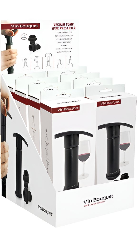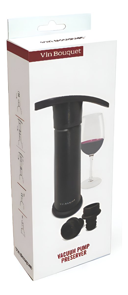 La Bomba de Vacío Manual Negra para Vino Vin Bouquet es el accesorio perfecto para los amantes del vino que desean preservar su sabor y frescura por más tiempo. Con un diseño elegante en color negro y fabricada en ABS de alta calidad, esta bomba de vacío es duradera y resistente. Incluye un tapón de silicona que se ajusta perfectamente a la mayoría de las botellas de vino, creando un sellado hermético que evita la oxidación y mantiene las propiedades del vino intactas. Su funcionamiento es sencillo y rápido, solo tienes que colocar el tapón en la botella, colocar la bomba de vacío sobre el tapón y presionar repetidamente hasta que sientas resistencia. Esto eliminará el aire de la botella, prolongando la vida útil del vino y permitiéndote disfrutar de su sabor y aroma en cada copa. Compacta y fácil de usar, esta bomba de vacío manual es ideal para llevar contigo a cualquier ocasión, ya sea una cena romántica, una reunión con amigos o un picnic al aire libre. No pierdas la oportunidad de disfrutar al máximo de tus vinos favoritos con la Bomba de Vacío Manual Negra para Vino Vin Bouquet.