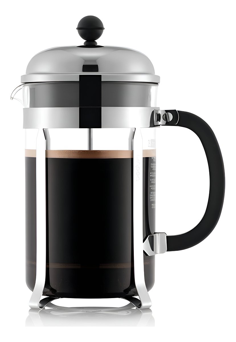 Volver a la TiendaLa cafetera Chambord Bodum de 1.5 litros y 12 tazas es una opción elegante y funcional para los amantes del café que valoran la tradición. Su diseño icónico en acero cromado aporta un toque de sofisticación a cualquier cocina, mientras que su funcionamiento manual permite obtener una preparación artesanal que resalta los sabores y aromas de cada grano.