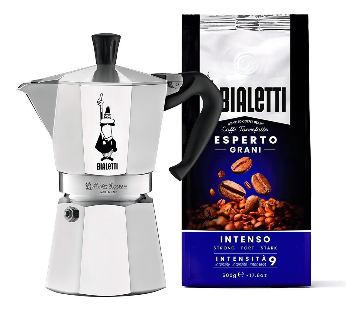 Cafetera Bialetti 6 tazas mas 500 grs de Cafe Bialetti en grano