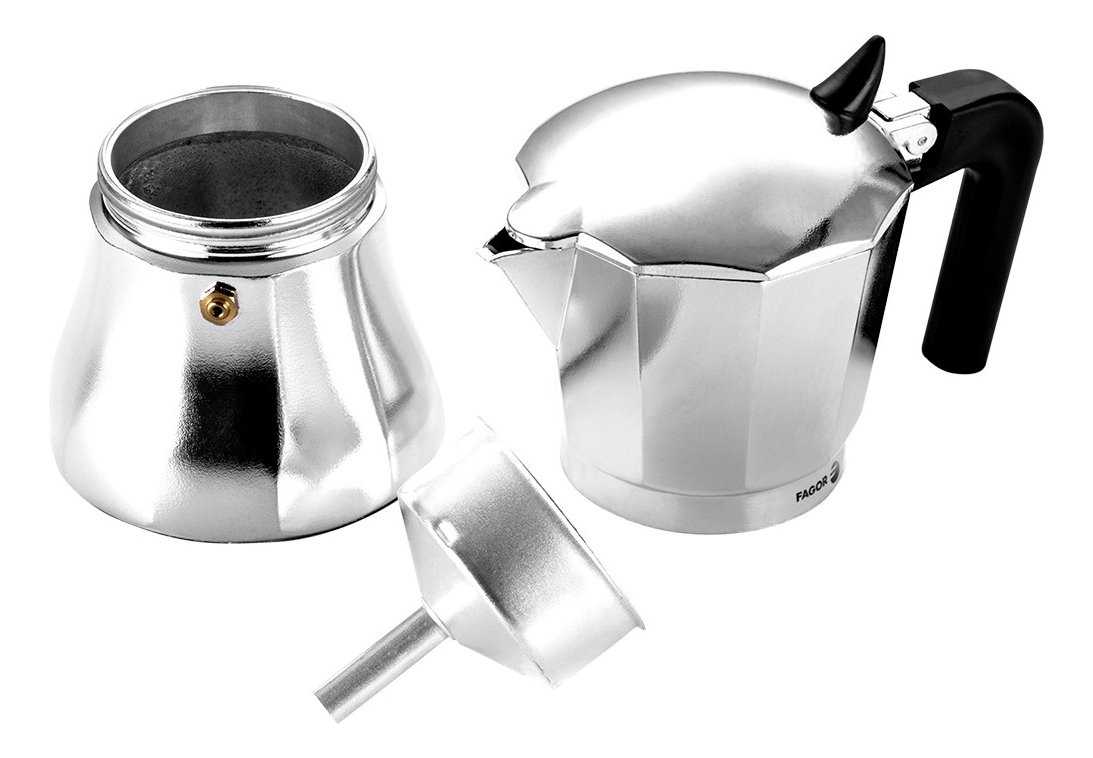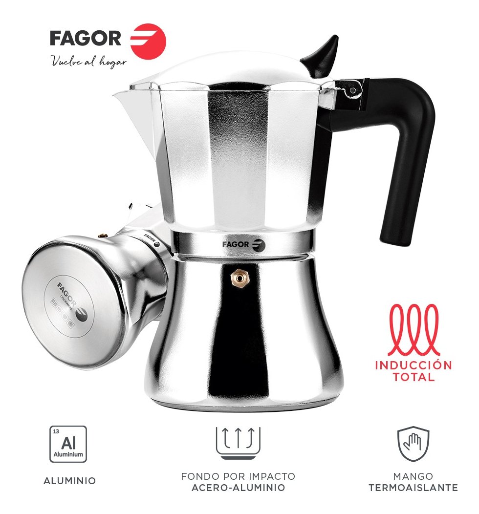 La cafetera Cupy está fabricada en aluminio con un acabado interior y exterior pulido espejo. Posee un mango termoaislante fabricado en nylon más reistente que aporta un mejor agarre y protege de posibles quemaduras. Su junta de silicona, libre de PFOA, es de gran durabilidad. Su base con fondo encapsulado por impacto, permite su uso en todo tipo de fuegos, en especial para las modernas cocinas de INDUCCIÓN.