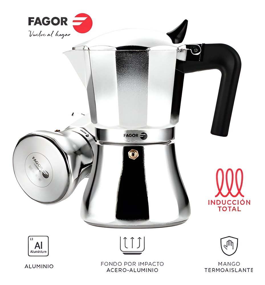 La cafetera Cupy está fabricada en aluminio con un acabado interior y exterior pulido espejo. Posee un mango termoaislante fabricado en nylon más reistente que aporta un mejor agarre y protege de posibles quemaduras. Su junta de silicona, libre de PFOA, es de gran durabilidad. Su base con fondo encapsulado por impacto, permite su uso en todo tipo de fuegos, en especial para las modernas cocinas de INDUCCIÓN.