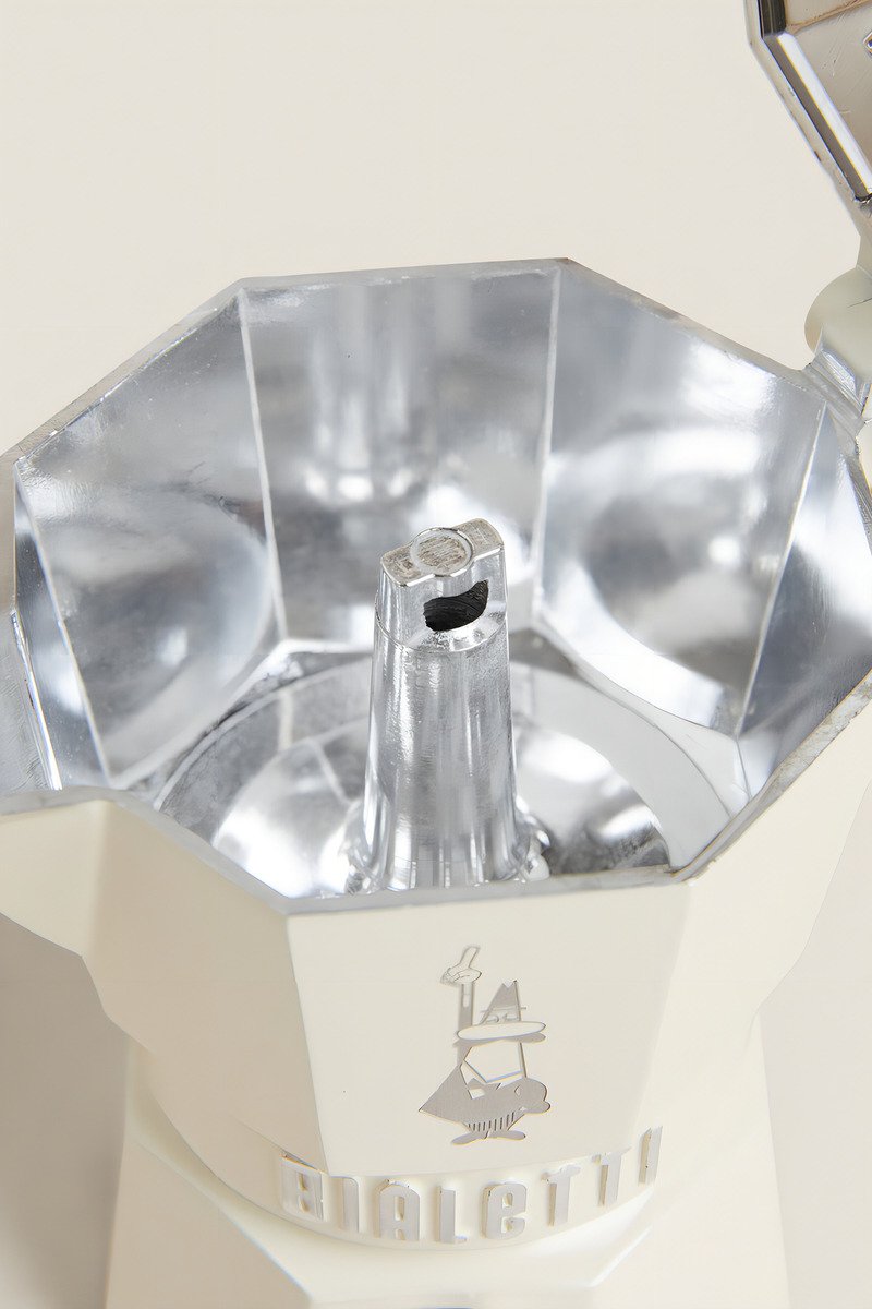 Colores súper brillantes, junta de silicona y revestimiento protector interno de la caldera. El pomo en forma de diamante y el mango recuerdan al Moka de los años 60, con un toque moderno y elegante.