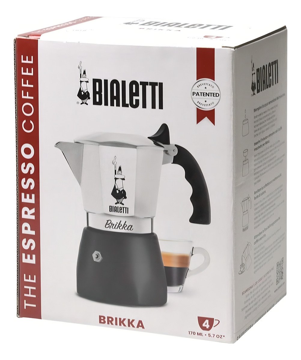 La Cafetera Moka Bialetti Brikka 4 Pocillos Italiana Espumoso es la elección perfecta para los amantes del café auténtico y de calidad. Con su diseño elegante en color gris/negro, esta cafetera de la reconocida marca Bialetti te brinda la experiencia de disfrutar de un café italiano en la comodidad de tu hogar.