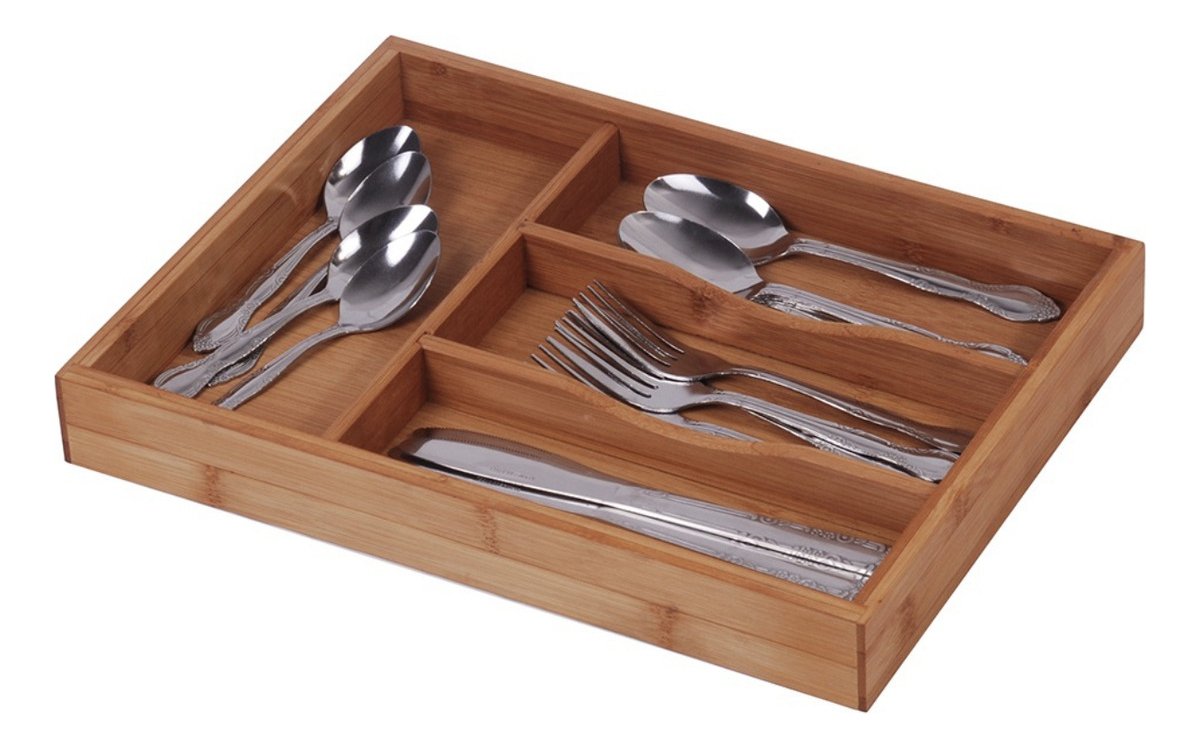 Volver a la TiendaLa cubiertera de cajón 4 divisiones 34x25xh4cm Bamboo de la marca Selecta es el accesorio perfecto para mantener tus cubiertos organizados y al alcance de tu mano. Con sus 4 compartimentos, podrás separar y clasificar tus cucharas, tenedores, cuchillos y otros utensilios de manera práctica y ordenada. Su material de bamboo le brinda un aspecto elegante y natural, además de ser resistente y duradero. No importa si eres un chef experimentado o simplemente quieres mantener tu cocina organizada, esta cubiertera es la elección perfecta.