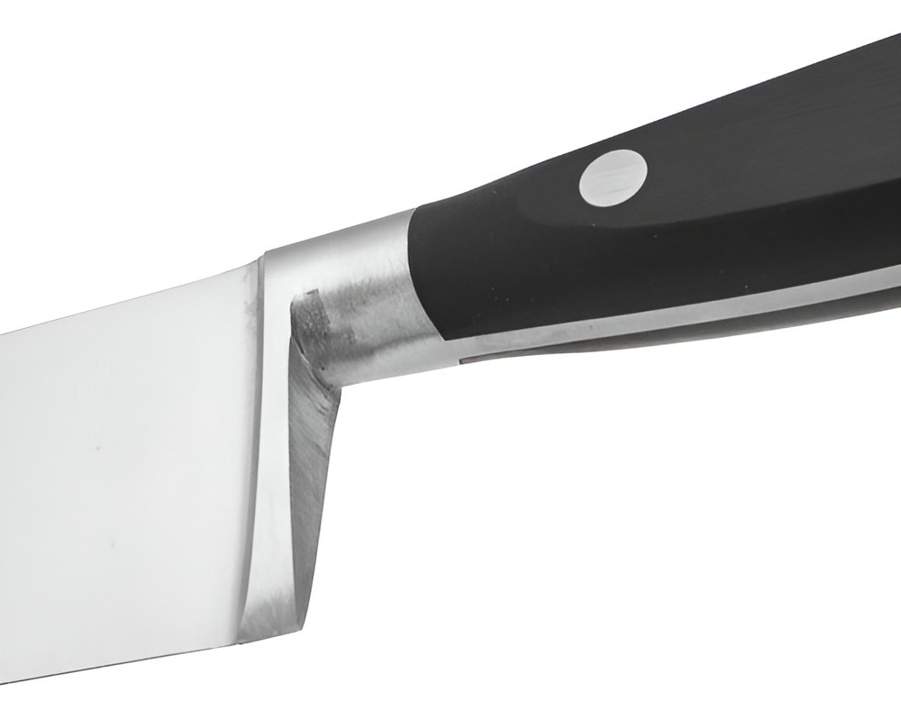 Del mismo modo, el mango te garantiza una sensación exclusiva a cada corte, debido a que está fabricado en polioximetileno. Este material es muy resistente a los golpes y las altas temperaturas. Además, dispone de una superficie antibacteriana para evitar la proliferación de bacterias y asegurar la higiene en cocina. Está unido a la hoja mediante remaches de acero inoxidable.