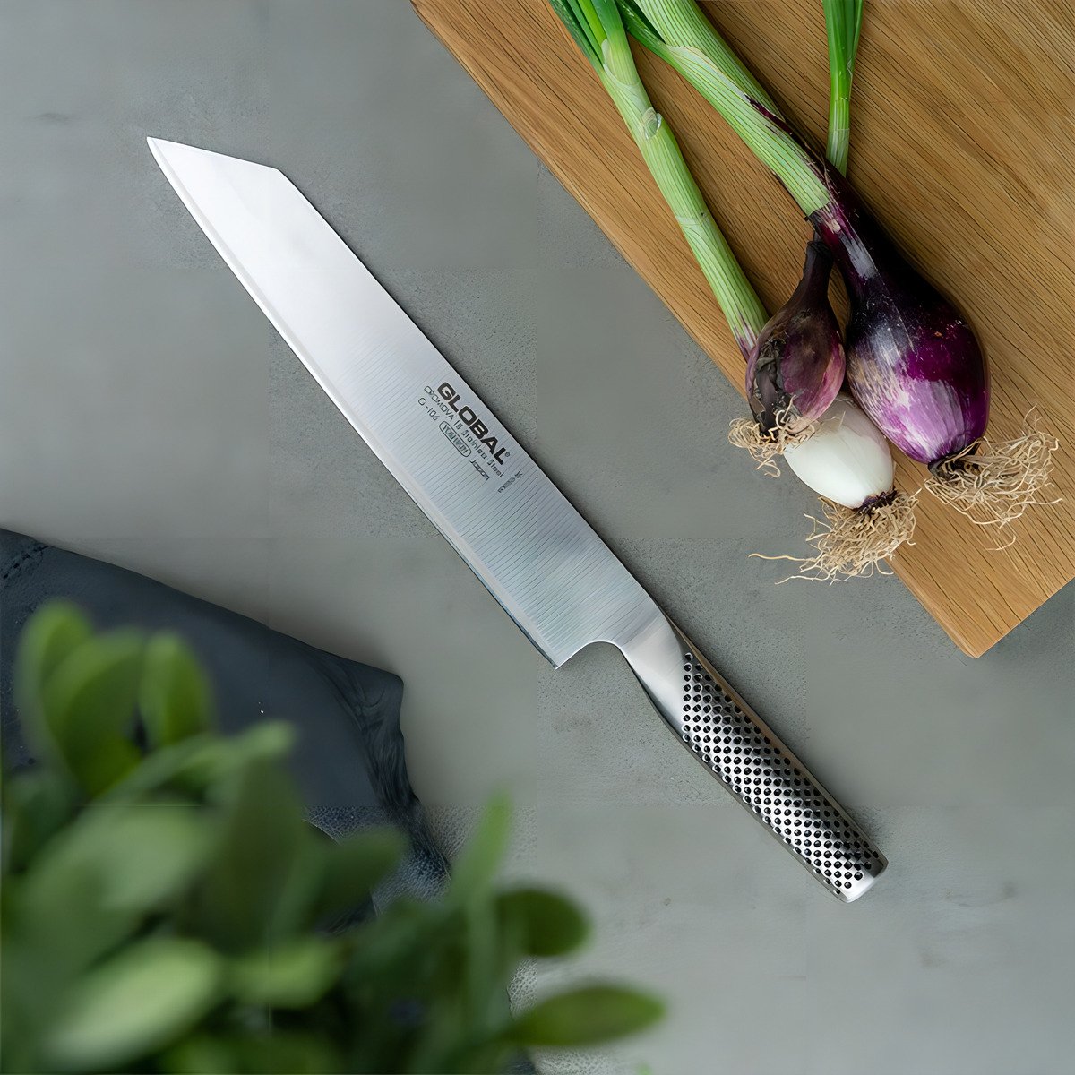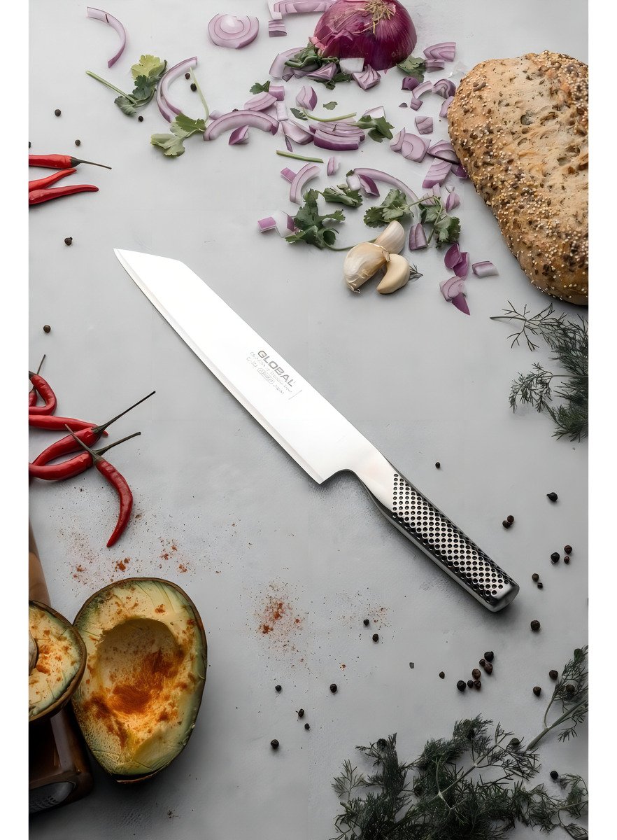 El diseño distintivo de la serie Global, con su acabado pulido y líneas limpias, añade un toque de sofisticación a cualquier colección de cuchillos. Ya sea que estés cocinando para una cena especial o simplemente disfrutando de una comida en casa, el cuchillo Kiritsuke G-106 elevará tu experiencia culinaria a un nuevo nivel.