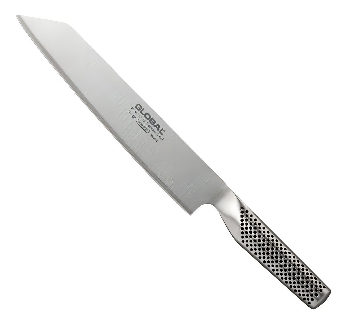 El cuchillo de pescado Kiritsuke Global G-106 es una herramienta esencial para los amantes de la cocina y la gastronomía. Con una longitud de 24 cm, este cuchillo combina la elegancia del diseño japonés con la funcionalidad que los chefs profesionales y aficionados buscan. Su hoja afilada y precisa permite realizar cortes finos y delicados, ideal para preparar sashimi y otros platos de pescado.