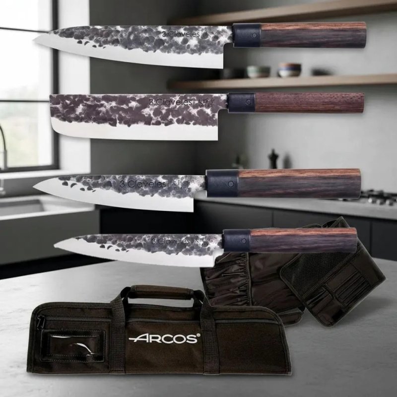 – La colección Sakura son cuchillos forjados con la hoja martilleada.