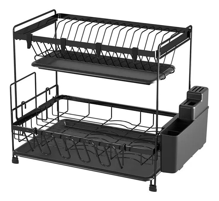 El escurridor de 2 niveles con bandeja de Cilantrobazar es la solución ideal para optimizar el espacio en tu cocina. Con un diseño elegante en color negro, este secaplatos combina funcionalidad y estilo, permitiendo un secado eficiente de tus utensilios. Su estructura de dos niveles ofrece capacidad para hasta 13 platos, facilitando el orden y la organización.