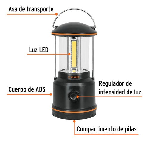 Con una altura de 23 cm y un diámetro de 11 cm, su tamaño compacto la hace fácil de transportar, mientras que su peso de 880 g asegura estabilidad. Ideal para campistas, excursionistas y amantes de la naturaleza, esta linterna es una herramienta esencial para disfrutar de tus actividades al aire libre sin preocupaciones. Asegúrate de tener la Linterna Farol LED Truper en tu equipo y ilumina tus aventuras.