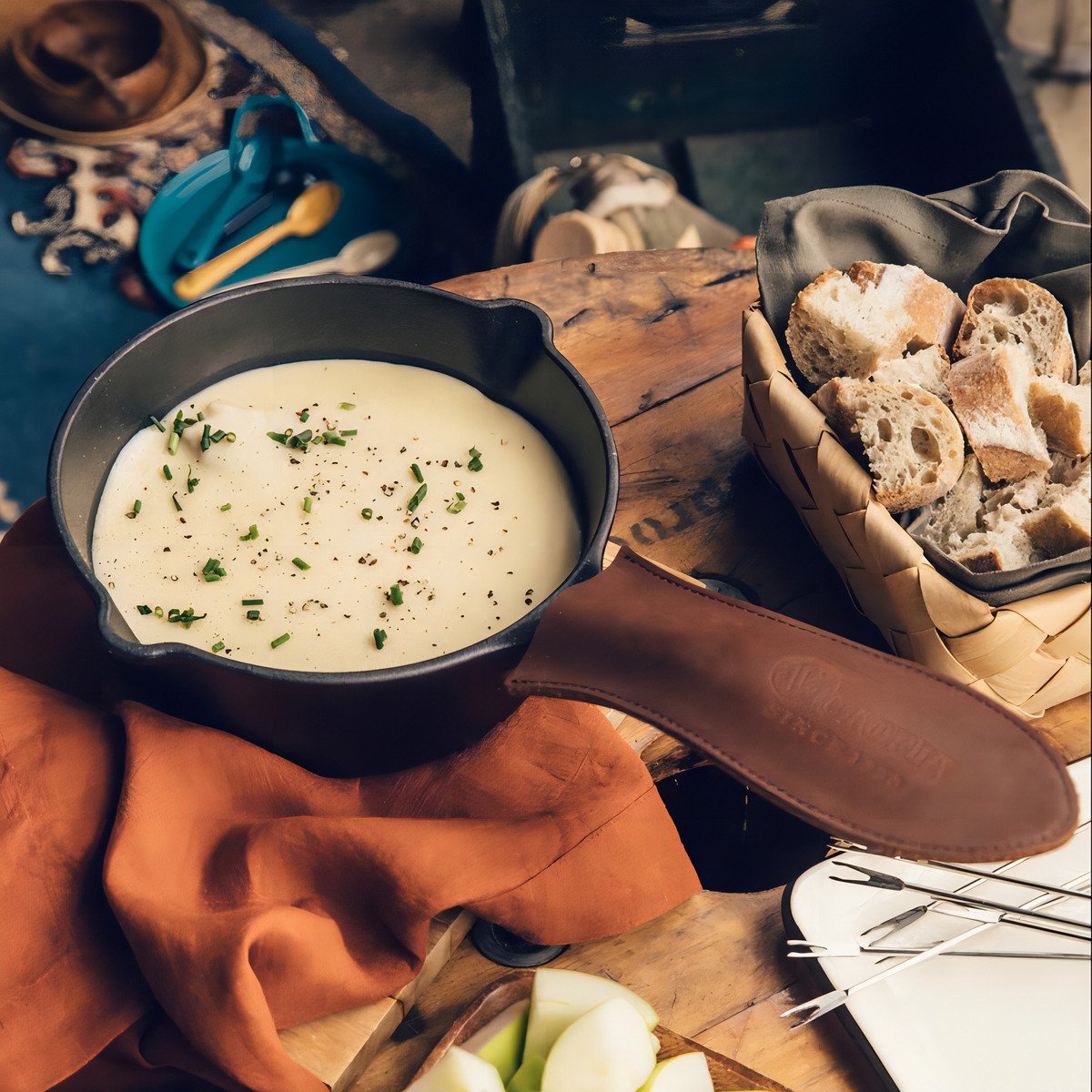 El material de cuero no solo aporta elegancia, sino que también es resistente al calor, lo que asegura una experiencia de cocción placentera y eficiente. Este mango es perfecto para aquellas sartenes de hierro fundido de la marca Victoria, dándole un toque personalizado y distintivo a tu utensilio de cocina.