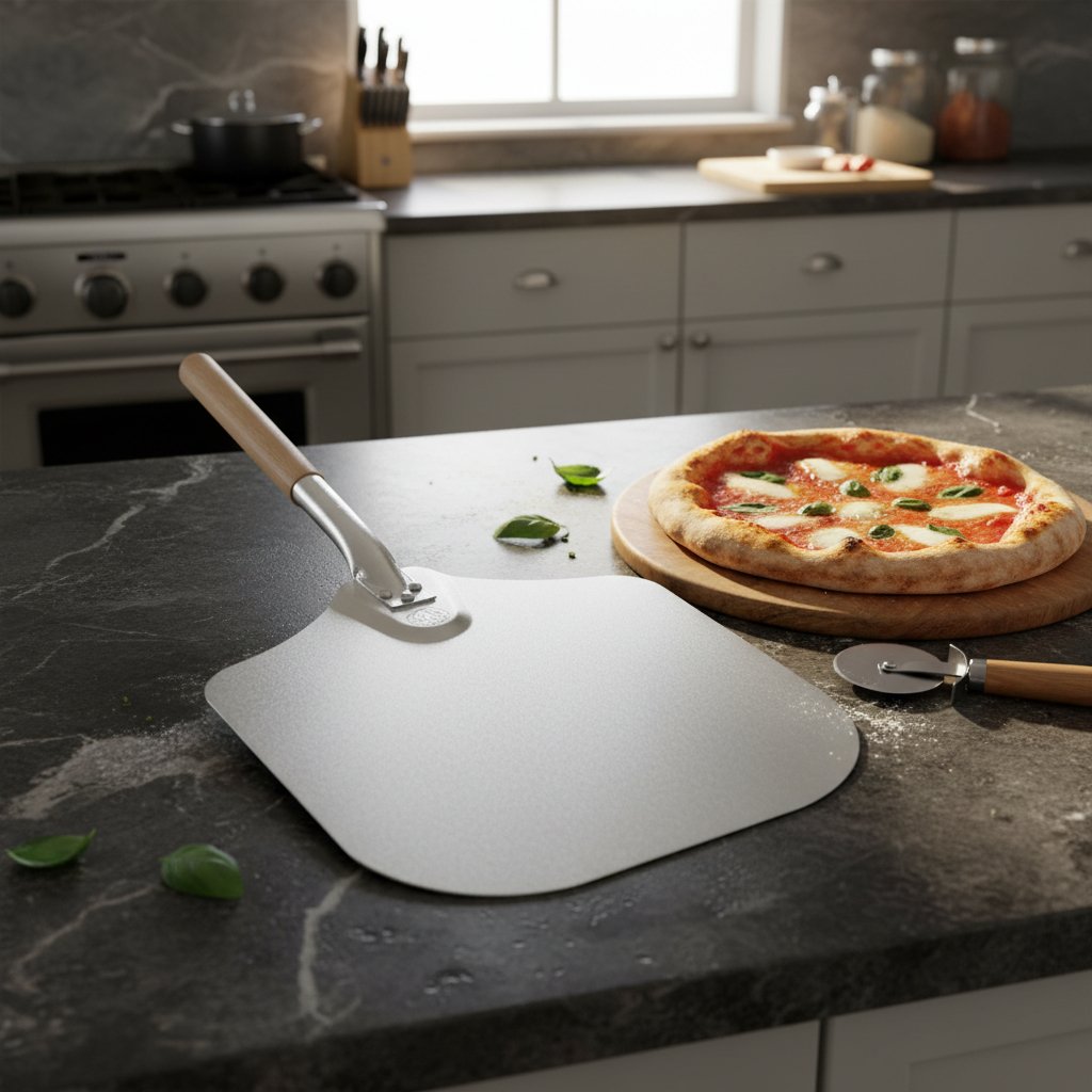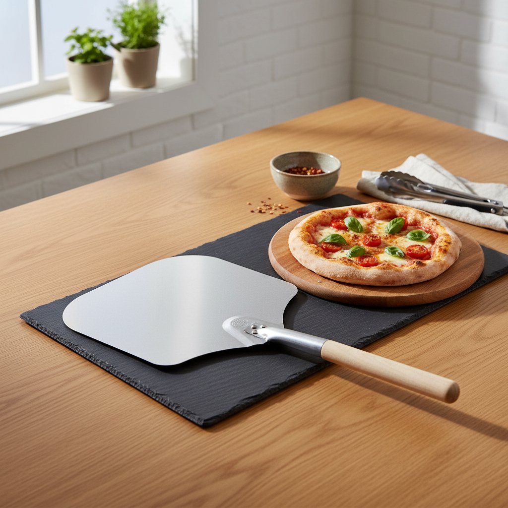El mango de madera proporciona un agarre seguro y ergonómico, facilitando el deslizamiento de la pizza en el horno. Su superficie de aluminio asegura una distribución uniforme del calor, lo que resulta en una cocción perfecta de tus pizzas, panes y otros platillos horneados.