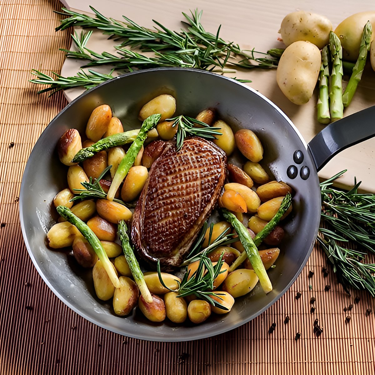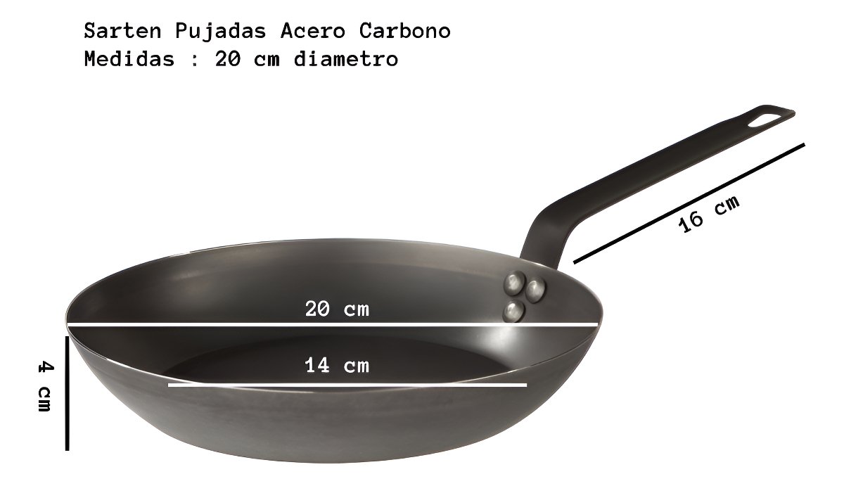 Sartenes profesionales fabricadas en hierro (acero) con excelentes propiedades térmicas y antiadherentes naturales. Ideales para sellar carnes y saltear verduras. Aptas para hornos y especialmente para cocinas de inducción. Limpieza: no es necesario utilizar ningún tipo de jabón o agua. Es suficiente frotar suavemente con un paño humedecido con aceite