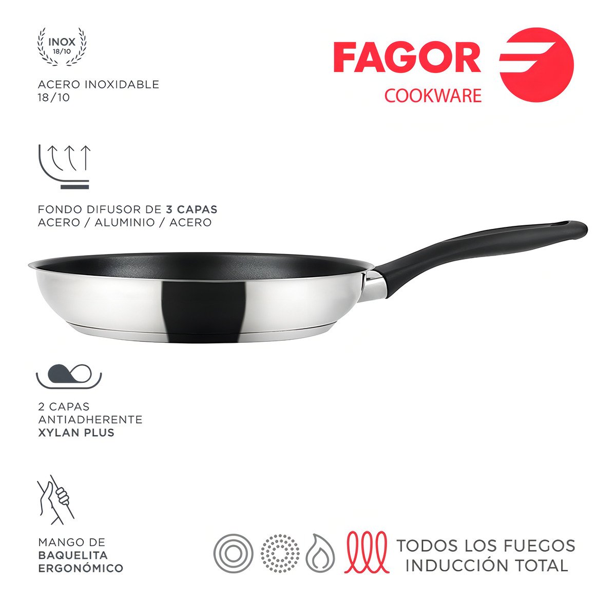 La sartén de acero inoxidable Fagor Enara de 26 cm combina diseño moderno y funcionalidad optimal. Su superficie antiadherente garantiza una cocción uniforme y facilita la limpieza, haciéndola ideal para preparar desde huevos hasta guisos complejos. La elección del acero inoxidable no solo la hace duradera, sino que también respeta el sabor de los alimentos.