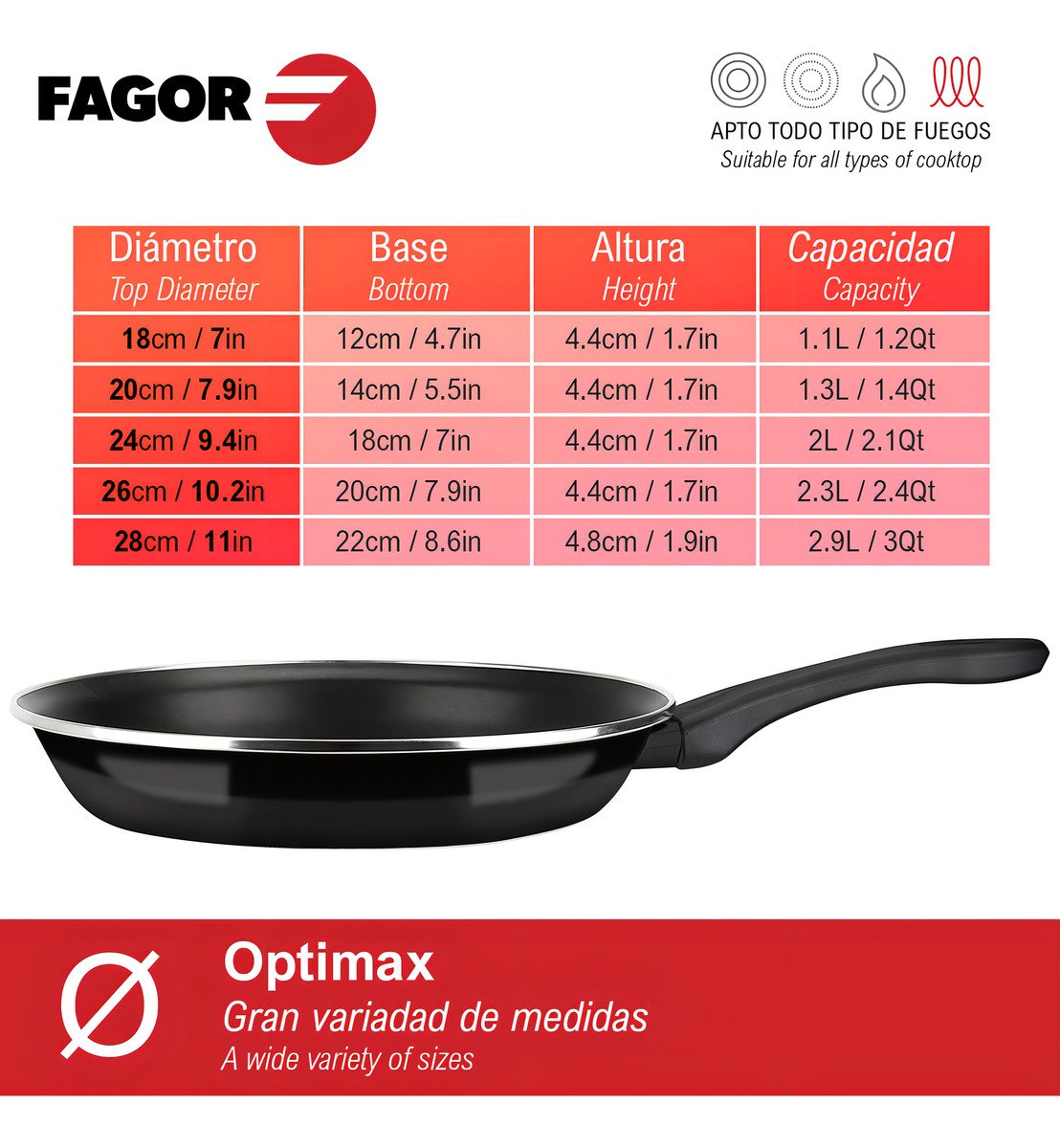Con un diámetro de 26 cm, es ideal para preparar una variedad de platillos, desde salteados hasta tortillas. Además, es apta para lavavajillas, lo que simplifica aún más su limpieza después de un día ajetreado en la cocina. Descubra cómo la sartén Fagor Optimax puede transformar su experiencia culinaria y hacer que cada comida sea un momento especial.