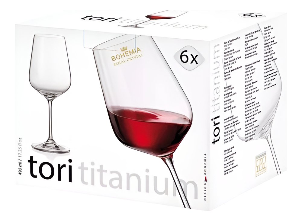 Set 6 Copas Bohemia Vino Tinto 490ml Tori Titanium Color Cristal