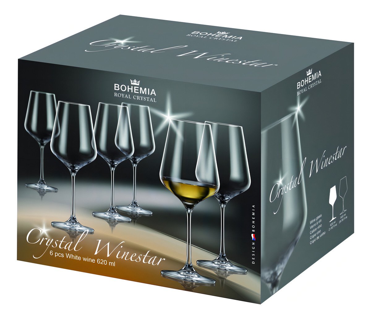 Disfrute de su vino favorito con el elegante Set de 6 Copas de Vino Bohemia de Cristal Winestar, diseñado para realzar la experiencia de cada sorbo. Con una capacidad de 620 ml y una altura de 24 cm, estas copas son perfectas para servir vino tinto, blanco o espumante. Su diámetro en la boca de 6,5 cm permite una excelente oxigenación, liberando todos los aromas y sabores de su bebida.
