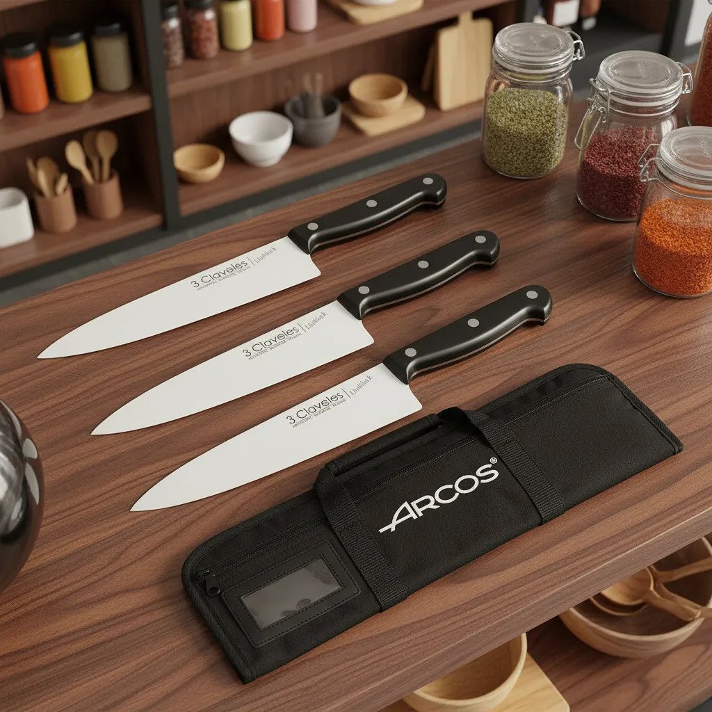 Set de 3 cuchillos 3 Claveles Uniblock mas Funda para 4 cuchillos ARCOS