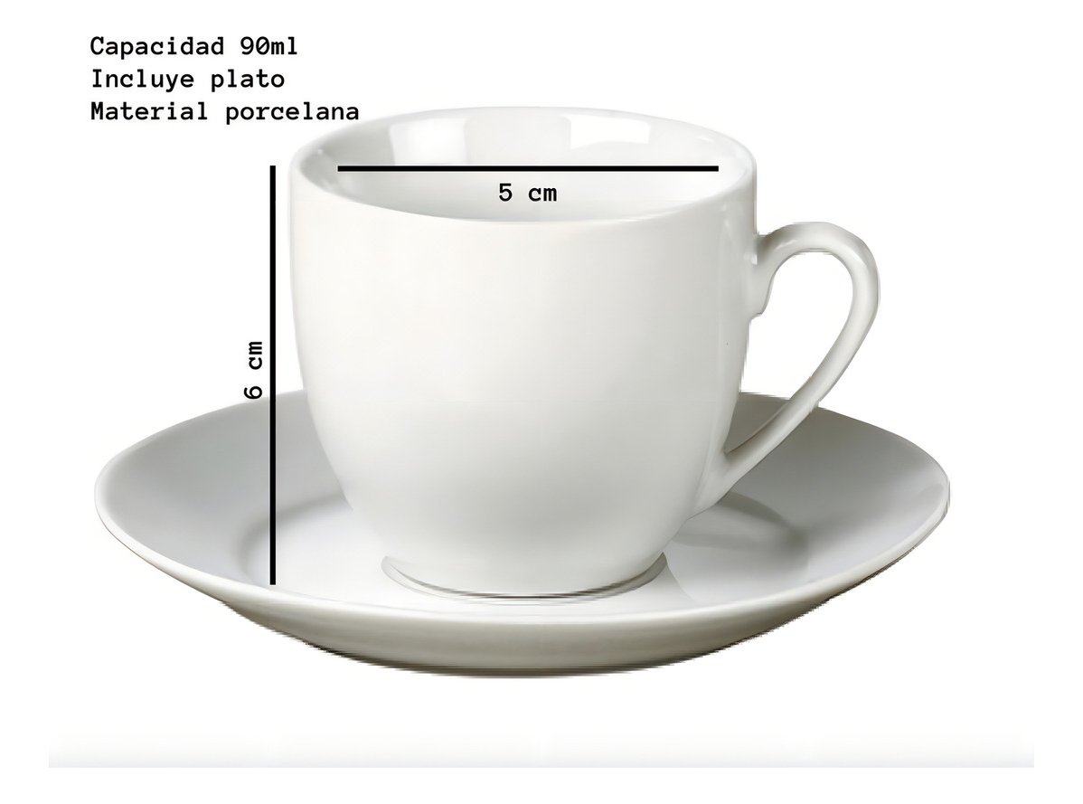 Set de 6 unidades . Taza de cafe 90ml con plato incluido .