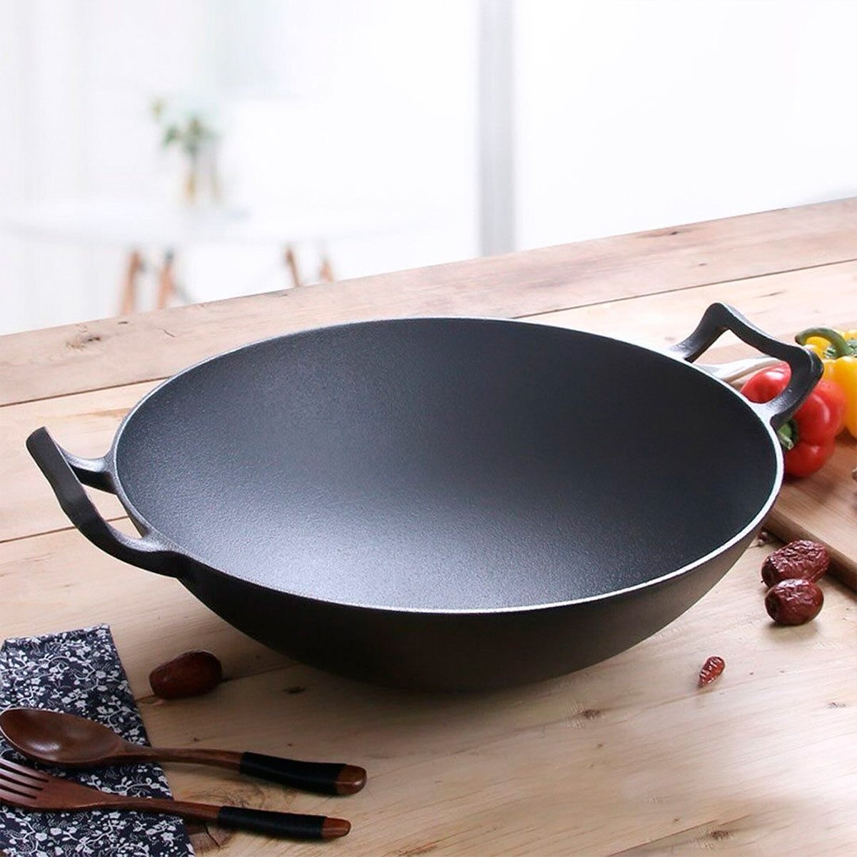 Wok Con Asas De Hierro Fundido 37cm Color Negro cantidad